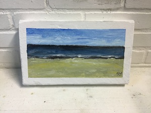 2016Schildering op hout. Zee. 18 x 30 x 2 cm.